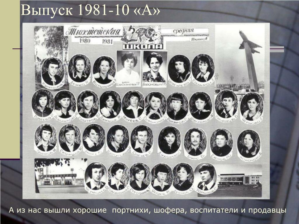 Выпуск 1981-10 «А» А из нас вышли хорошие портнихи, шофера, воспитатели и продавцы