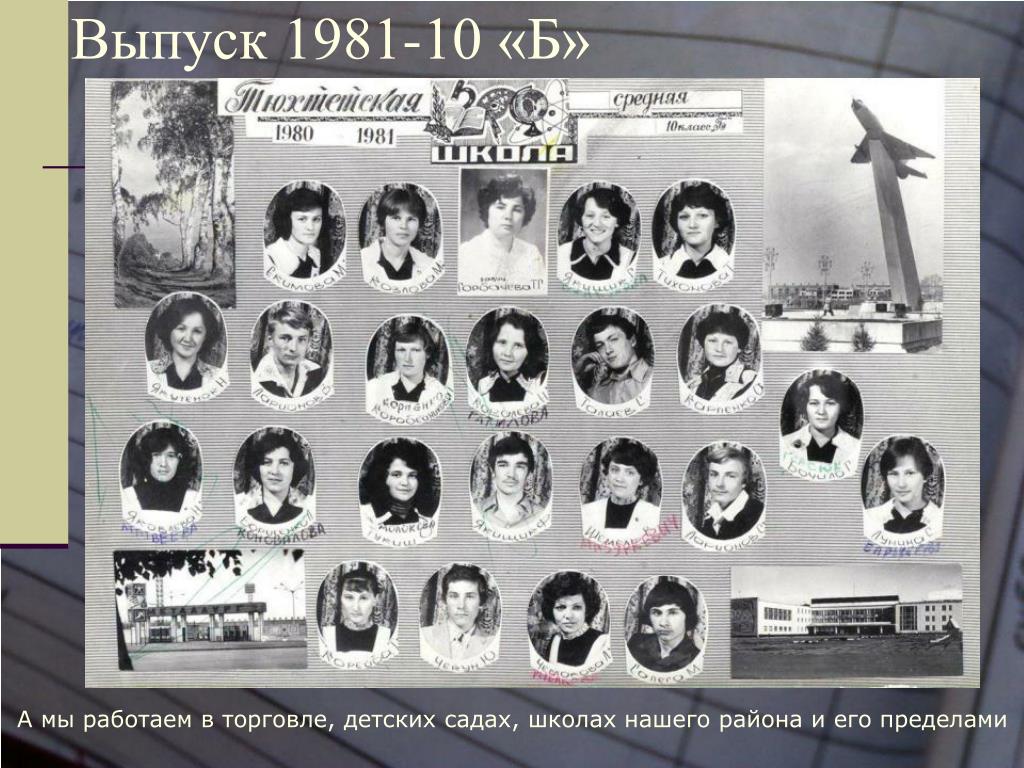 Выпуск 1980-10 «Б» класс Многие из них окончив вузы сегодня работают в родном Тюхтете