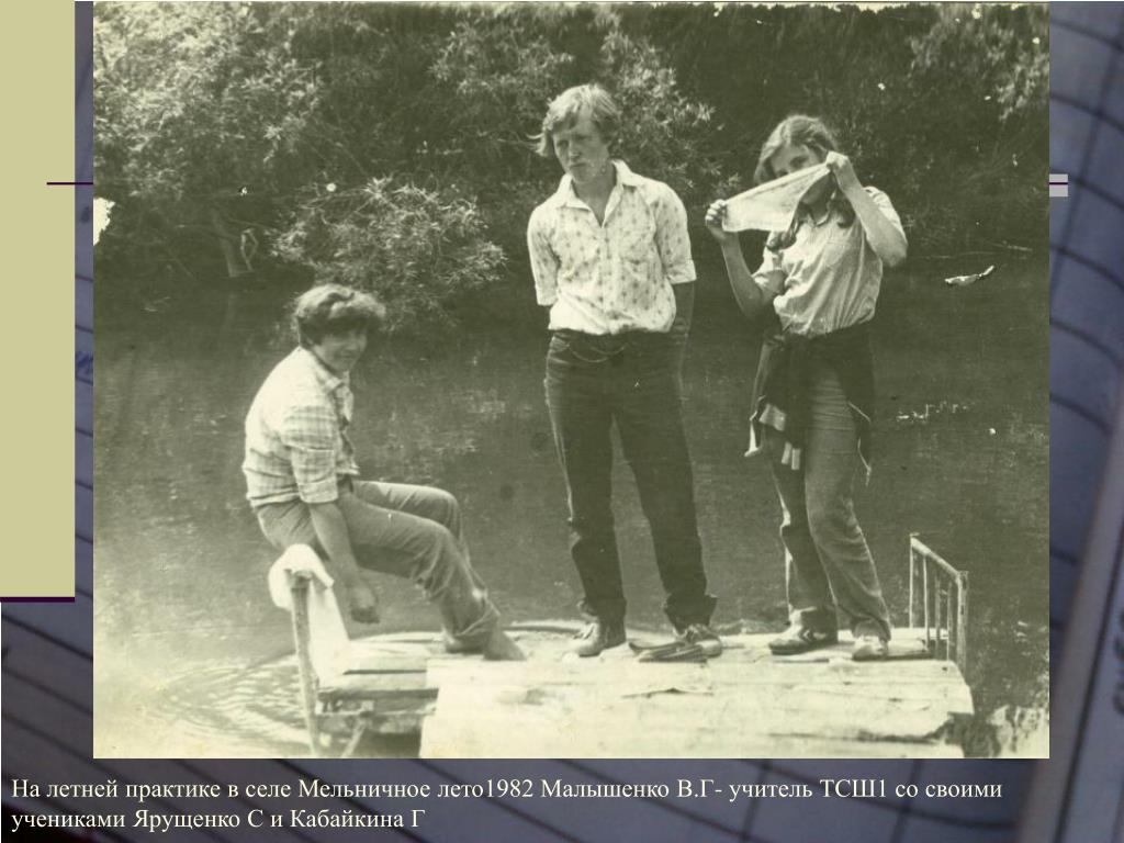 На летней практике в селе Мельничное лето1982 Малышенко В.Г- учитель ТСШ1 со своими учениками Ярущенко С и Кабайкина Г