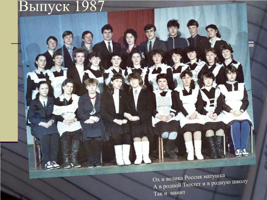 Выпуск 1987 Ох и велика Россия матушка А в родной Тюхтет и в родную школу Так и манит