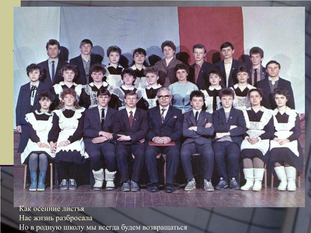 Как осенние листья Нас жизнь разбросала Но в родную школу мы всегда будем возвращаться