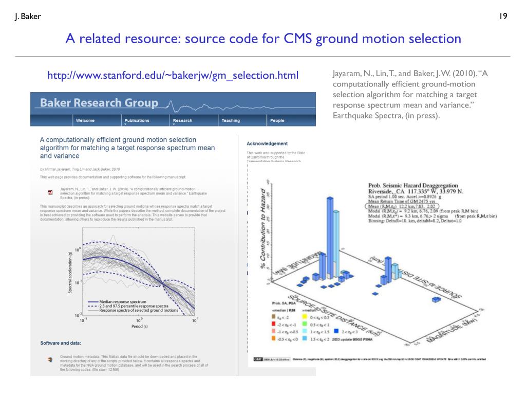 A related resource: source code for CMS ground motion selection http://www.stanford.edu/~bakerjw/gm_selection.html Jayaram, N., Lin, T., and Baker, J. W. (2010). “A computationally efficient ground-motion selection algorithm for matching a target response spectrum mean and variance.” Earthquake Spectra, (in press).