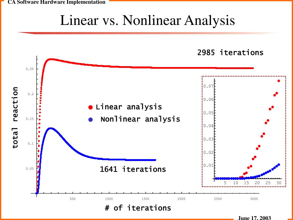 2985 iterations Linear analysis Nonlinear analysis total reaction 1641 iterations # of iterations Linear vs. Nonlinear Analysis