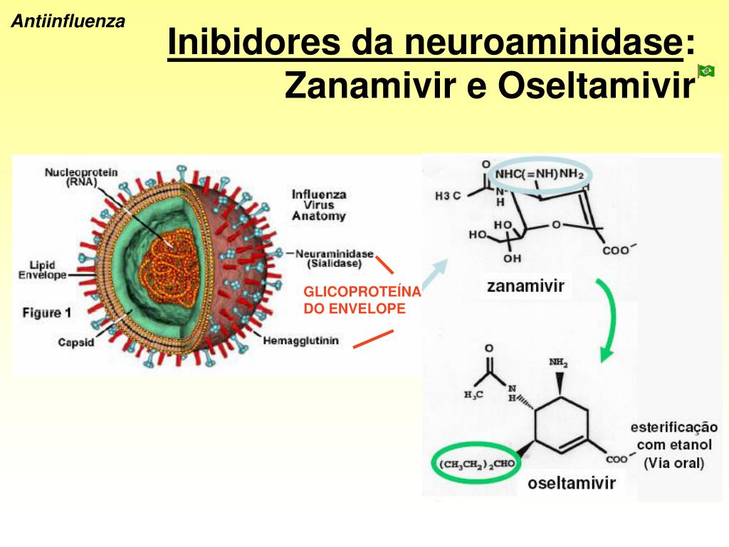 Antiinfluenza Inibidores da neuroaminidase: Zanamivir e Oseltamivir GLICOPROTEÍNAS DO ENVELOPE