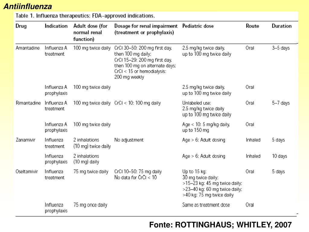 Antiinfluenza Fonte: ROTTINGHAUS; WHITLEY, 2007