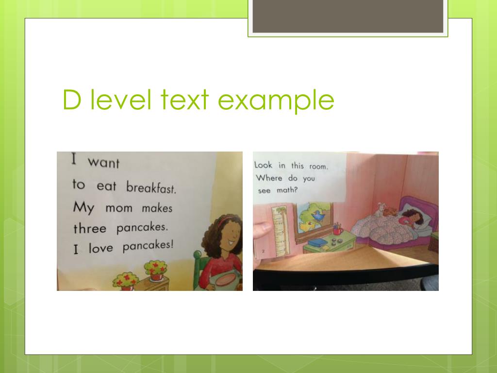 1st grade readiness goals • Reading • D reader • All high frequency words • Mostly two to six lines of text per page • Longer Sentences • Identify story elements • Setting • Character • Main events • Retell familiar stories