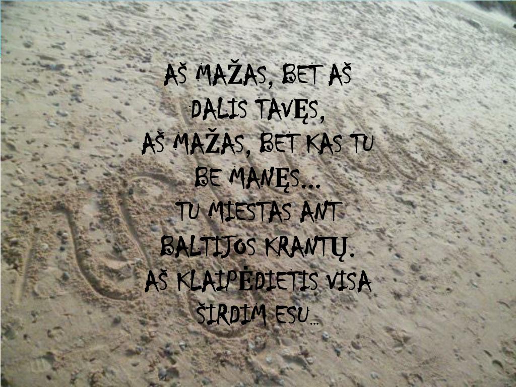 AŠ MAŽAS, BET AŠ DALIS TAVĘS, AŠ MAŽAS, BET KAS TU BE MANĘS... TU MIESTAS ANT BALTIJOS KRANTŲ. AŠ KLAIPĖDIETIS VISA ŠIRDIM ESU...