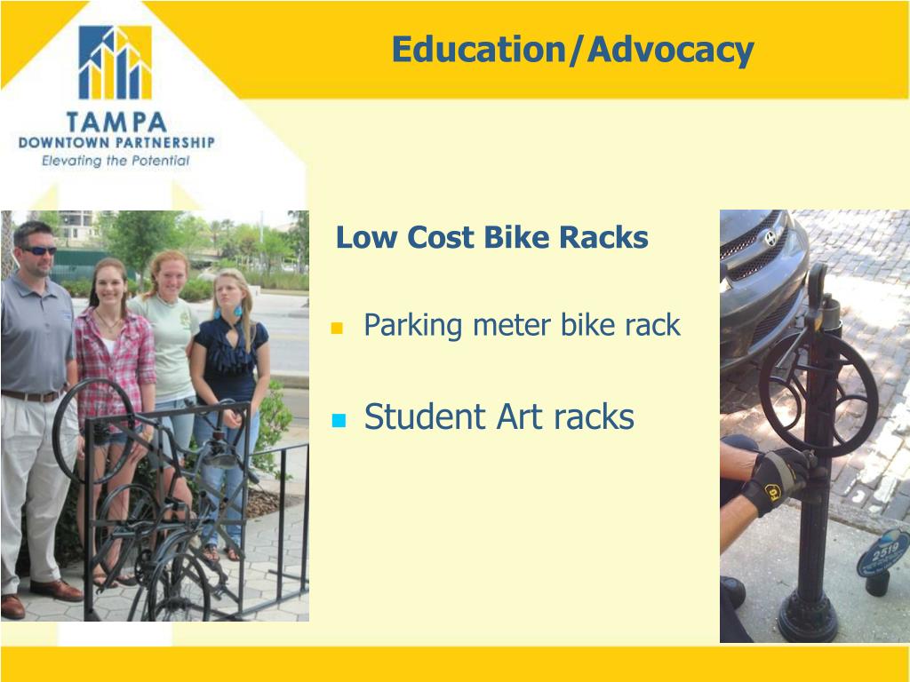 Education/Advocacy Low Cost Bike Racks • Parking meter bike rack • Student Art racks