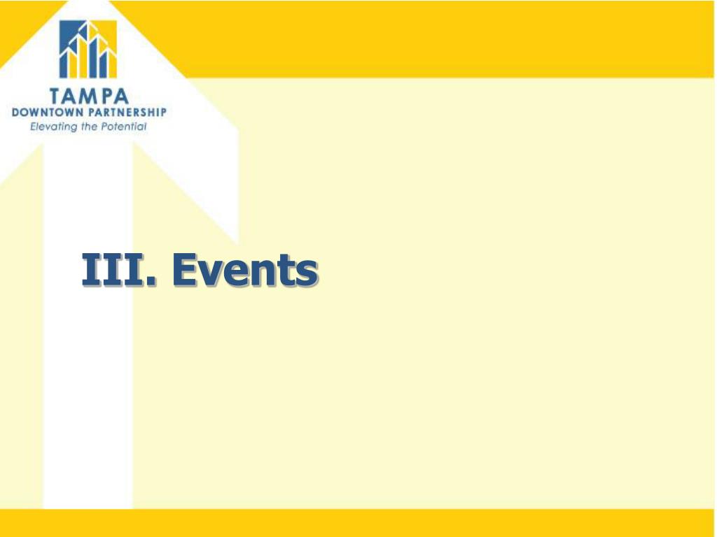 Tampa’s Downtown Quick Facts • Land area 760 acres (220 blocks) • Workforce 50,000+ • Office Space 9.4 Million Sq. Ft. • Art & Cultural Centers 9 • Students 9,000 • Residents within 3 miles 98,000+ • Residents in Downtown 4,300+ (est.) • Parking spaces 25,000+ • Bike lanes/trails 7