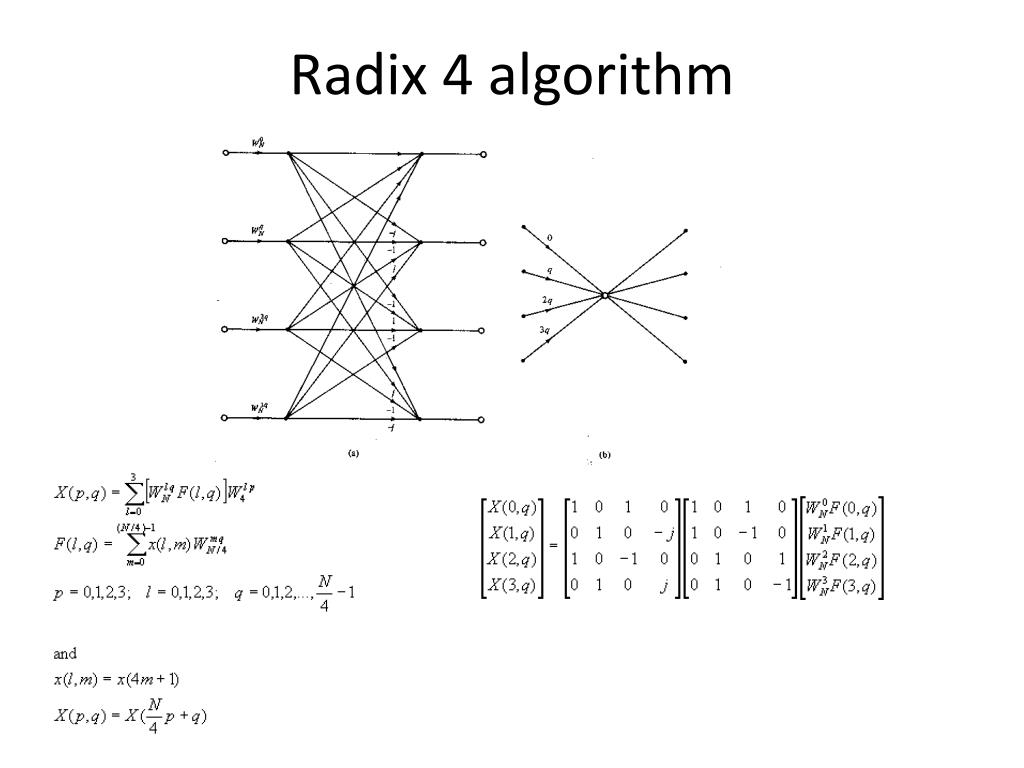 Selected FFT 16/32 core algorithm (Minimal DSP slices utilization) Basic butterfly computation in a radix-4 FFT algorithm Sixteen-point radix-4 decimation-in-time algorithm