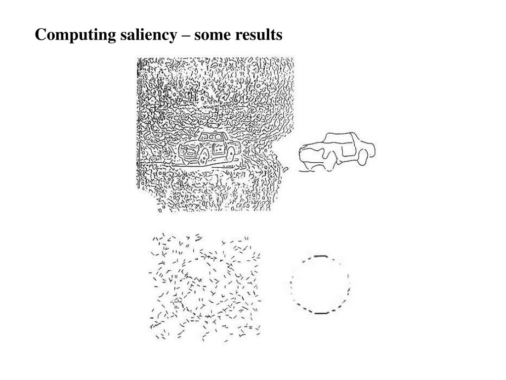 Final saliency at p 3 2 p i 1 S(p) = max S (p) Very high computational requirements, but can be implemented Highly efficiently in a locally connected network. [Ullman, 1995]
