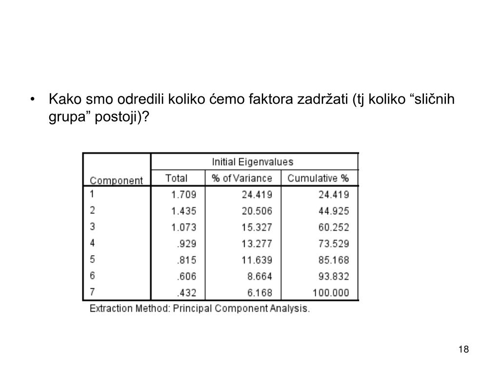 Kako smo odredili koliko ćemo faktora zadržati (tj koliko “sličnih grupa” postoji)?