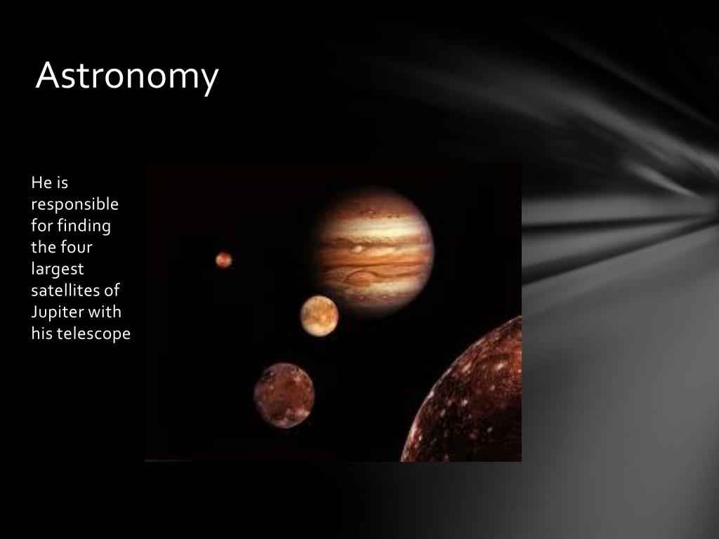 Astronomy • He is responsible for finding the four largest satellites of Jupiter with his telescope