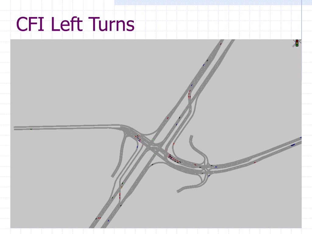 Benefits of CFI • Improved Level of Service (LOS) • Less Delay • Increased Capacity • More Mainline Green Time • Existing: 80 sec out of 150, 53% • Traditional: 54 sec out of 115, 47% • CFI: 74 sec out of 115, 64%