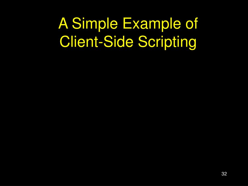Disadvantages • Client-side scripts do not work with all browsers • Some user intentionally turn scripting off on their browsers • This increases the complexity of the Web page, as it now has to support both situations: browsers with scripting capability, and those not having that capability