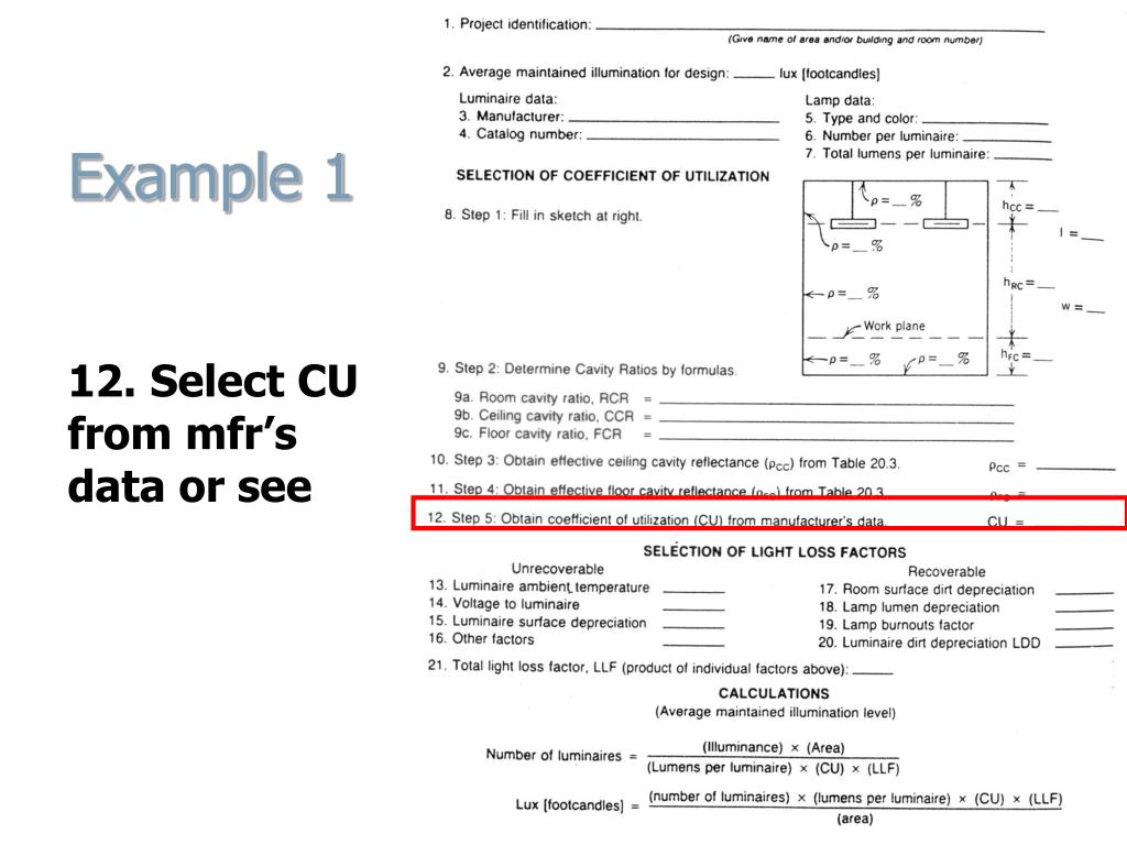 Coefficient of Utilization Factor(CU) Calculation 9. Calculate Cavity Ratios