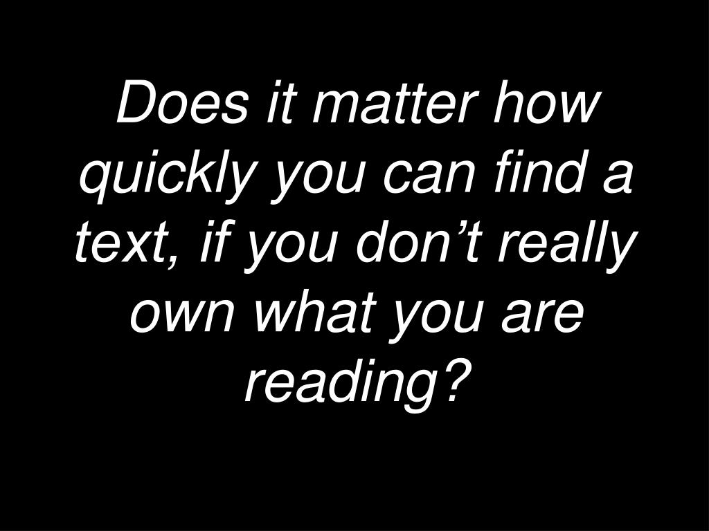 Does it matter how quickly you can find a text, if you don’t really own what you are reading?