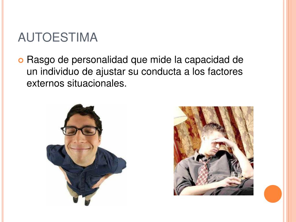 AUTOESTIMA • Rasgo de personalidad que mide la capacidad de un individuo de ajustar su conducta a los factores externos situacionales.