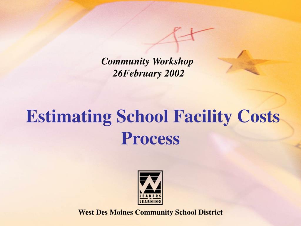 Community Workshop 26February 2002 Estimating School Facility Costs Process West Des Moines Community School District