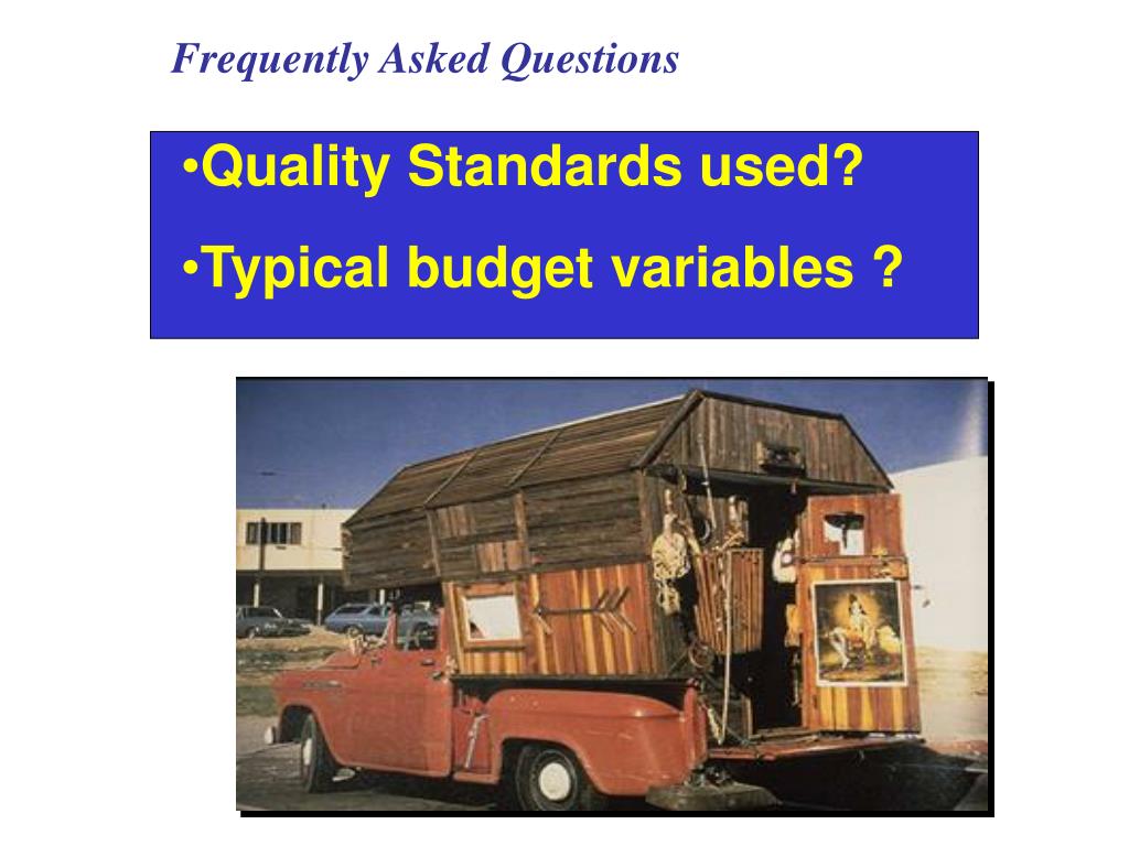 Frequently Asked Questions • Quality Standards used? • Typical budget variables ?
