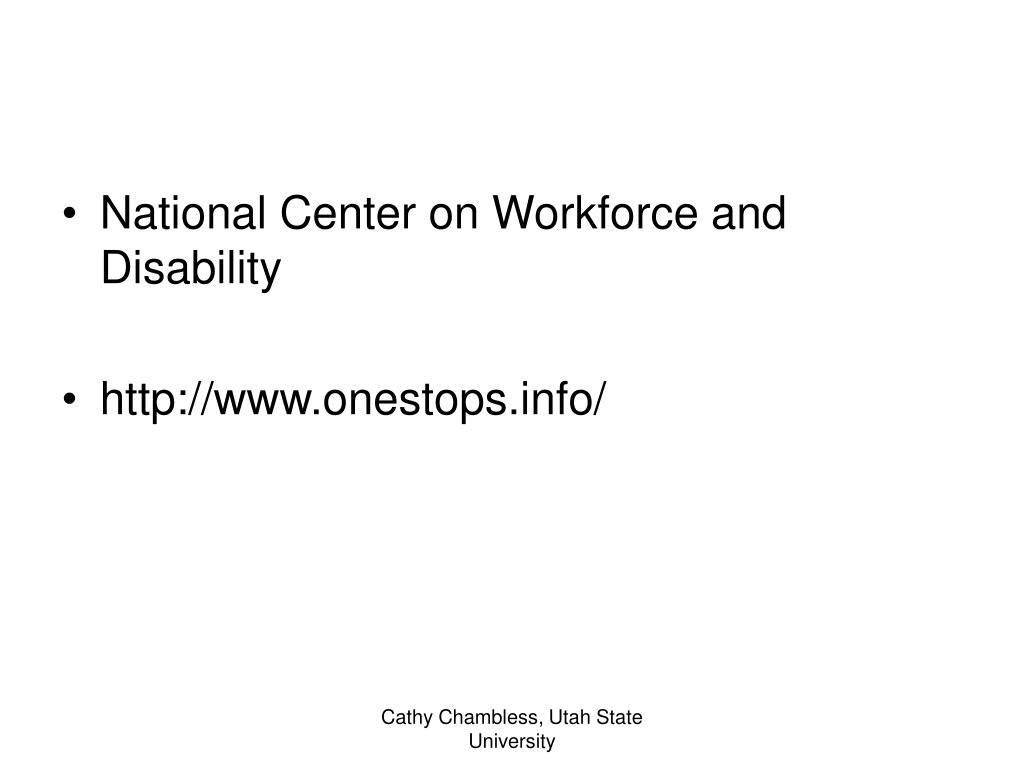National Center on Workforce and Disability • http://www.onestops.info/ Cathy Chambless, Utah State University
