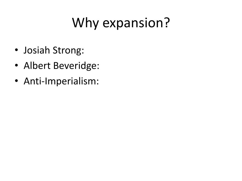 Why expansion? • Josiah Strong: • Albert Beveridge: • Anti-Imperialism: