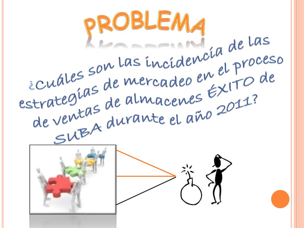 PROBLEMA ¿Cuáles son las incidencia de las estrategias de mercadeo en el proceso de ventas de almacenes ÉXITO de SUBAdurante el año 2011?