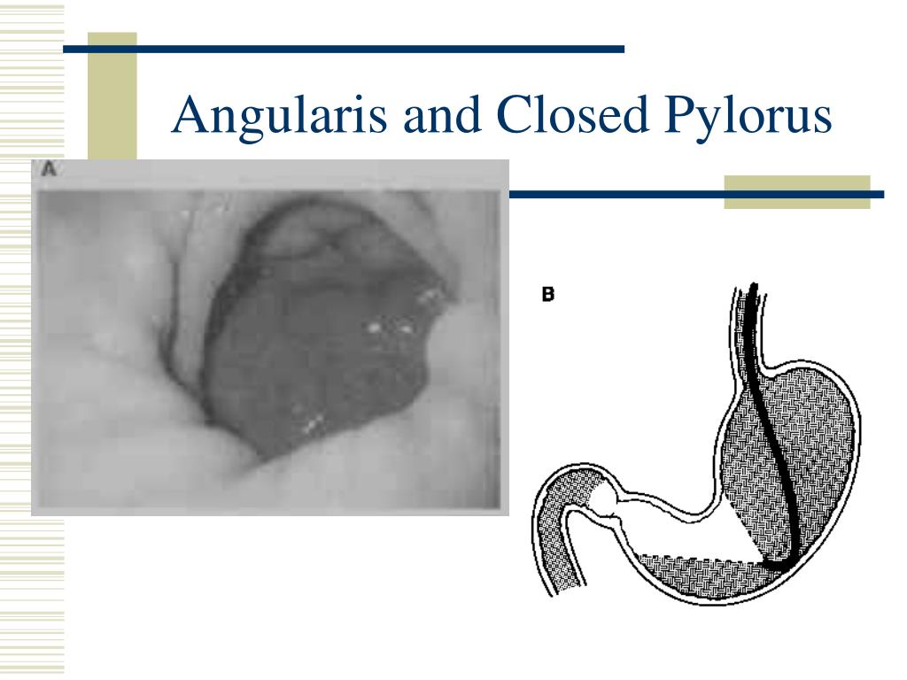 Stomach • After passing the GE-junction, the endoscope will enter the stomach. • The gastric lake and rugae become visible. • Follow the rugae to the angularis, antrum and pre-pyloric areas.