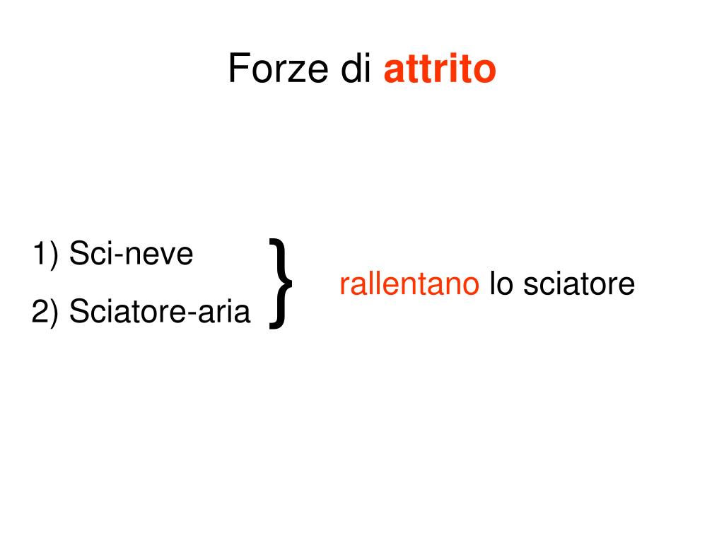 Forze di attrito } 1) Sci-neve 2) Sciatore-aria rallentano lo sciatore