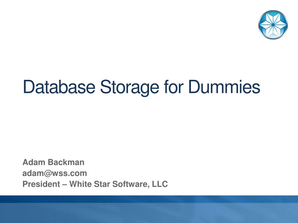 Database Storage for Dummies Adam Backman adam@wss.com President – White Star Software, LLC