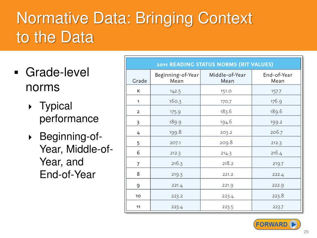 Grade-level norms Typical performance Beginning-of-Year, Middle-of-Year, and End-of-Year Normative Data: Bringing Context to the Data