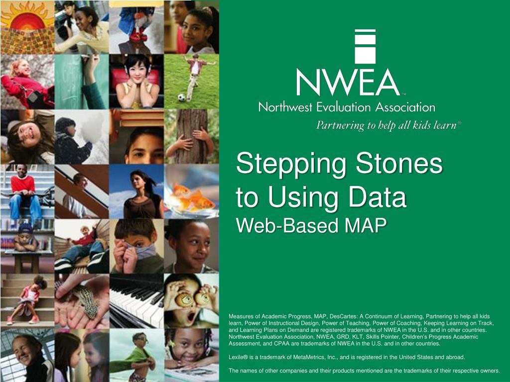 Stepping Stones to Using DataWeb-Based MAP Measures of Academic Progress, MAP, DesCartes: A Continuum of Learning, Partnering to help all kids learn, Power of Instructional Design, Power of Teaching, Power of Coaching, Keeping Learning on Track, and Learning Plans on Demand are registered trademarks of NWEA in the U.S. and in other countries. Northwest Evaluation Association, NWEA, GRD, KLT, Skills Pointer, Children’s Progress Academic Assessment, and CPAA are trademarks of NWEA in the U.S. and in other countries. Lexile® is a trademark of MetaMetrics, Inc., and is registered in the United States and abroad. The names of other companies and their products mentioned are the trademarks of their respective owners.