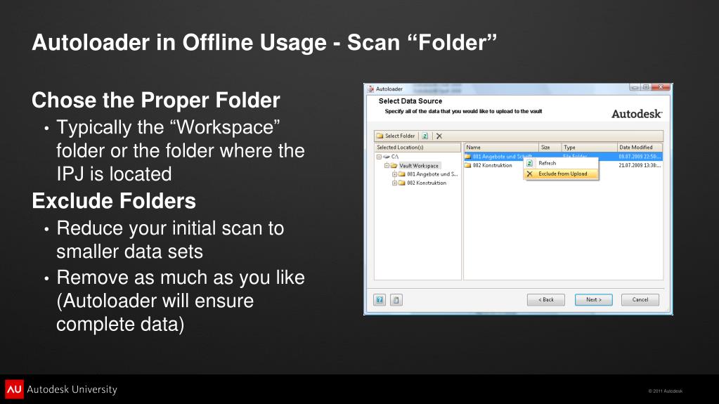 Autoloader in Offline Usage - Scan “Folder” Chose the Proper Folder • Typically the “Workspace” folder or the folder where the IPJ is located Exclude Folders • Reduce your initial scan to smaller data sets • Remove as much as you like (Autoloader will ensure complete data)