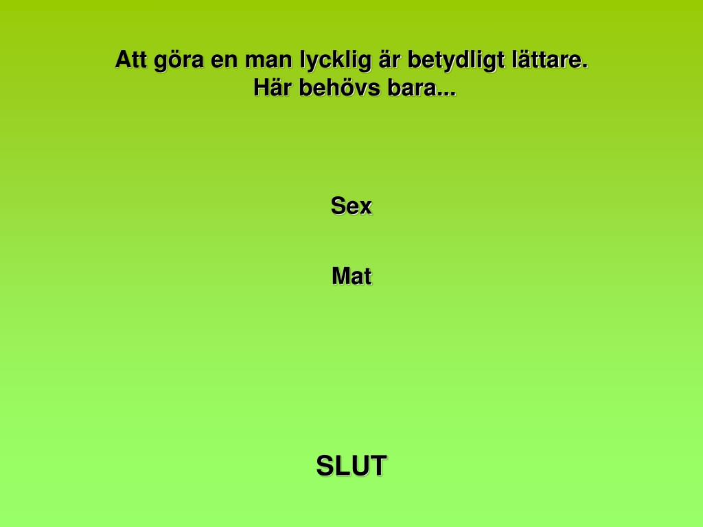 Att göra en man lycklig är betydligt lättare. Här behövs bara... Sex Mat SLUT