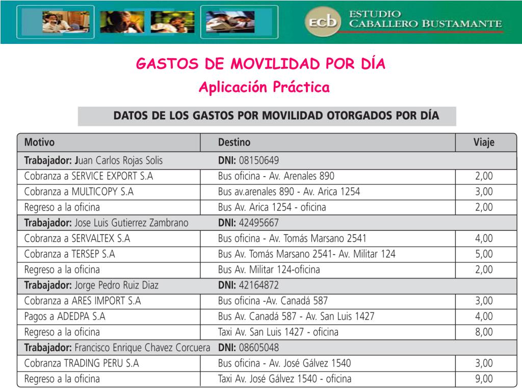 GASTOS DE MOVILIDAD POR DÍA Aplicación Práctica