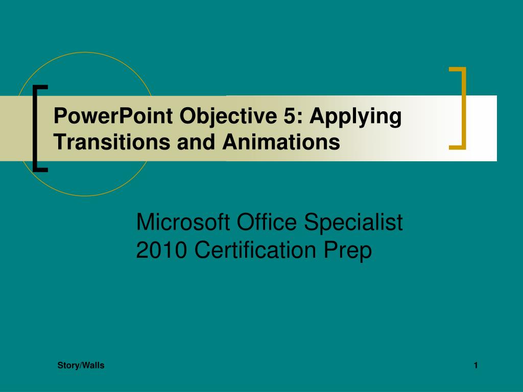 PowerPoint Objective 5: Applying Transitions and Animations Microsoft Office Specialist 2010 Certification Prep Story/Walls