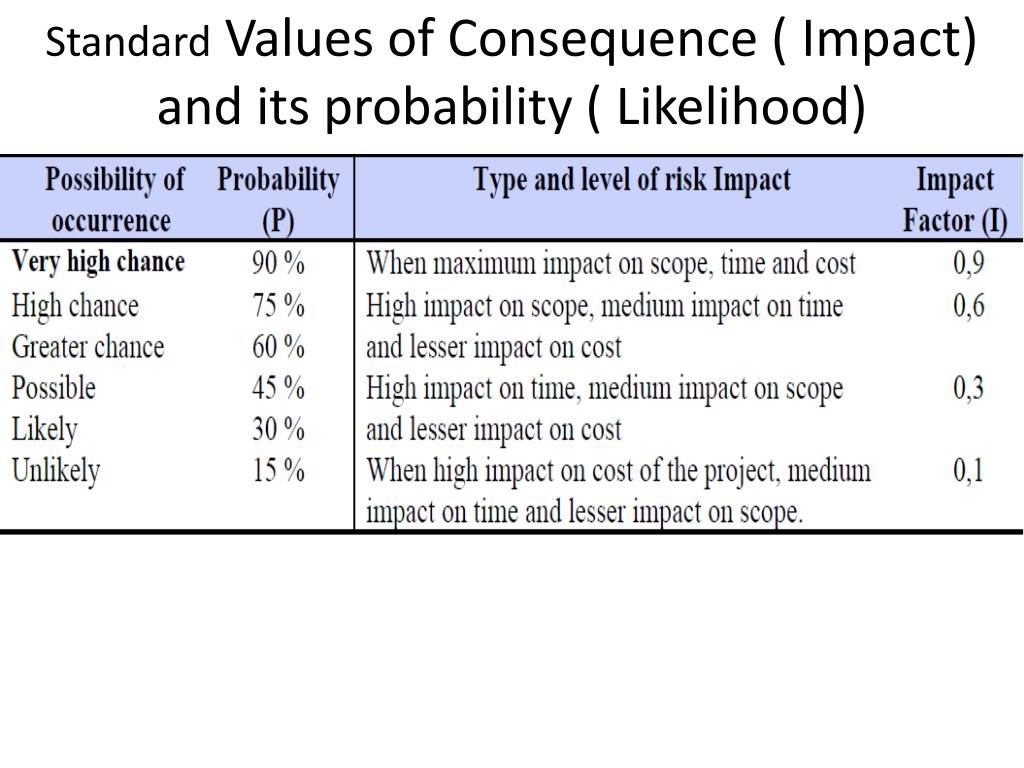 Standard Values of Consequence ( Impact) and its probability ( Likelihood)