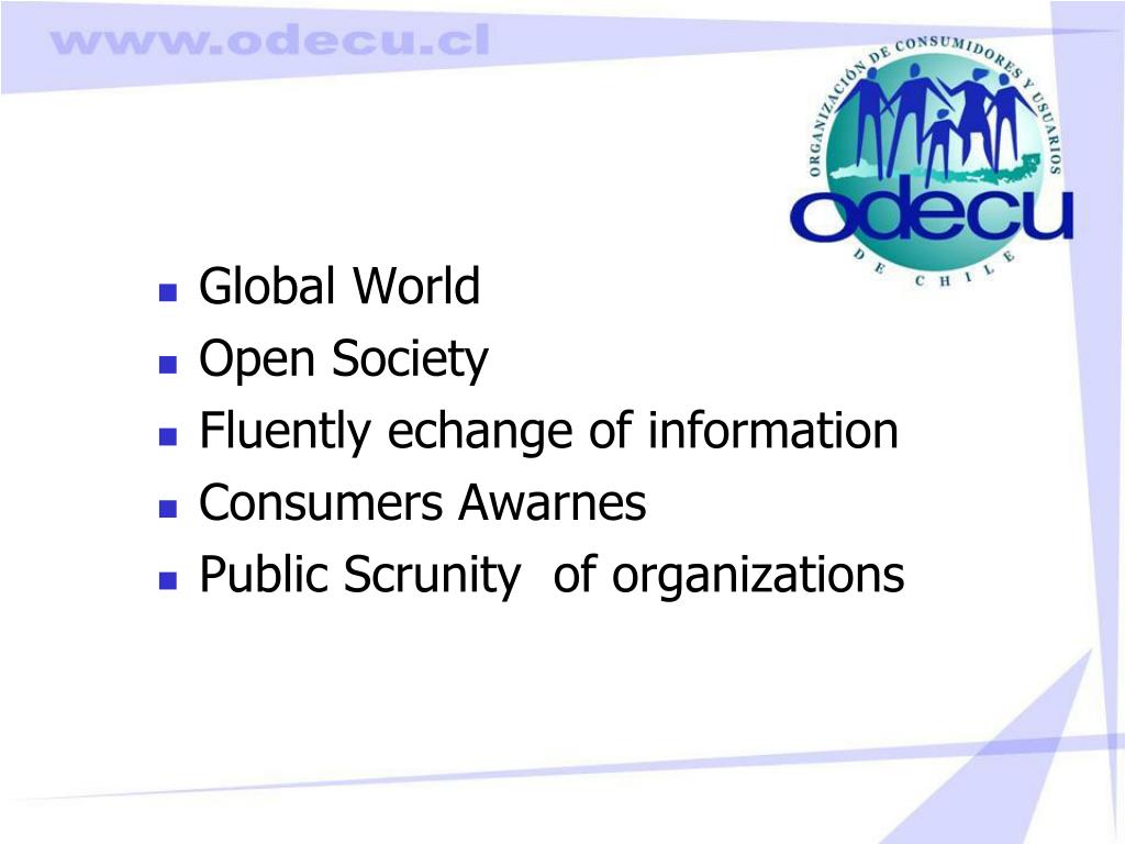 Global World • Open Society • Fluently echange of information • Consumers Awarnes • Public Scrunity of organizations