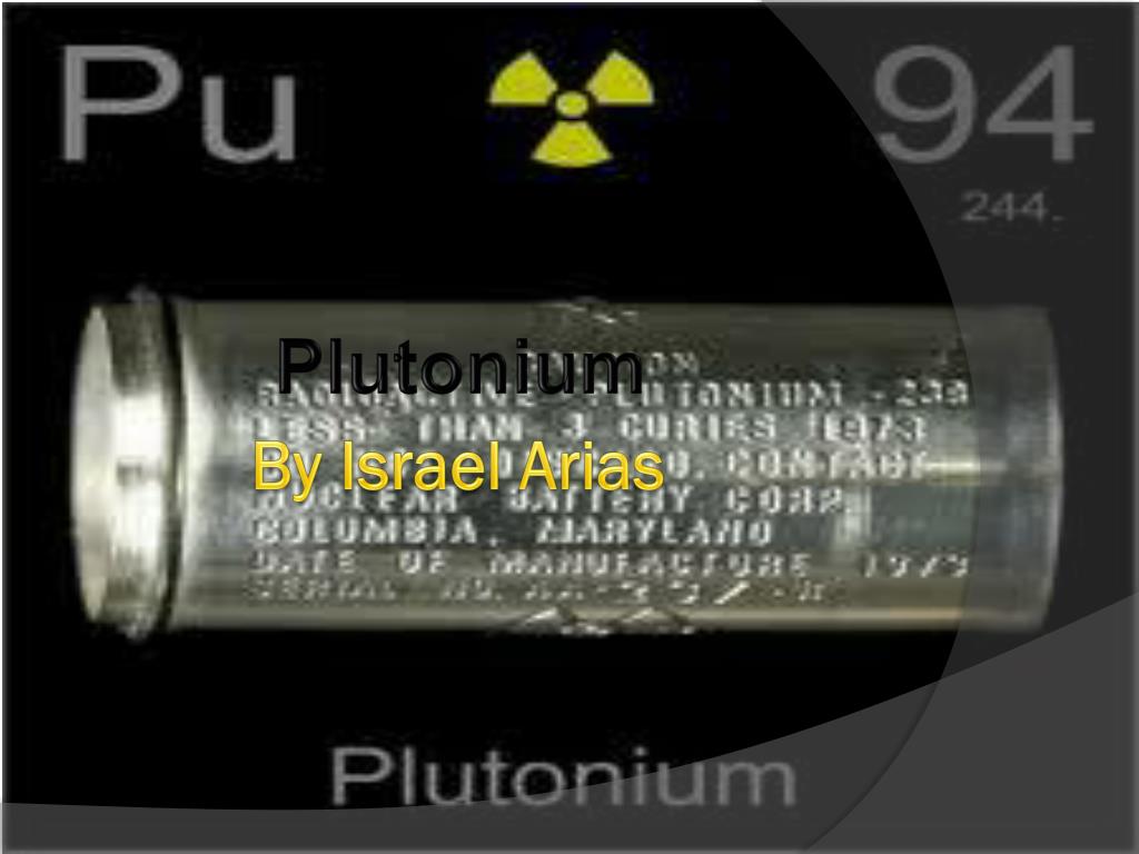 Plutonium. By Israel Arias. Element: Plutonium. Element symbol:Pu Element Name: Plutonium Atomic number: 94 Atomic mass: 244. The metal plutonium. Plutonium is a solid It is a metal Its family name is actinide or actinide series It was discovered by Glen T. Seaborg in 1940.