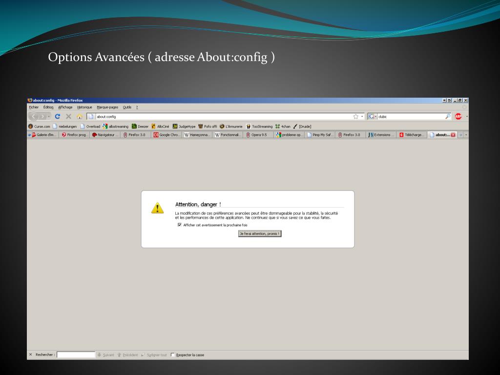 Inconvenients • Peut utilise beaucoup de mémoire avec plusieurs onglets ( exemple : 20 onglets = 285MO de ram ) • Euh….c’est tout.