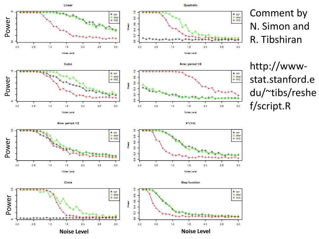Comment by N. Simon and R. Tibshiranhttp://www-stat.stanford.edu/~tibs/reshef/script.R Power Power Power Power Noise Level Noise Level
