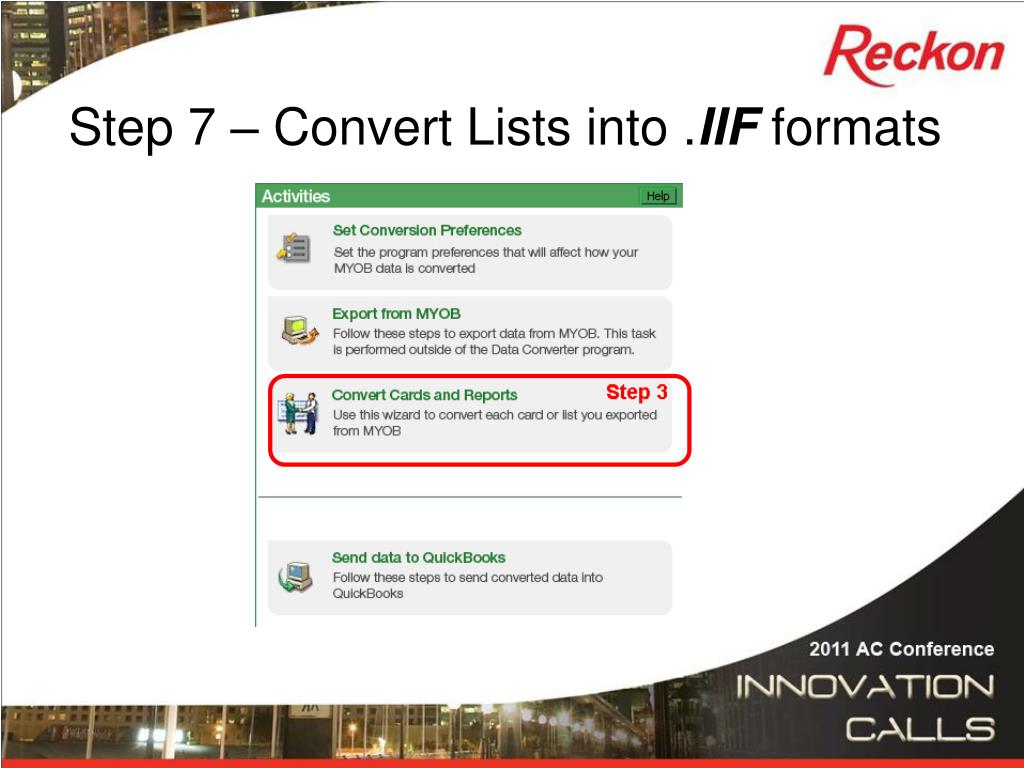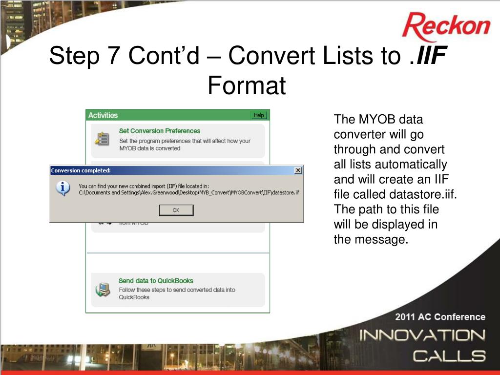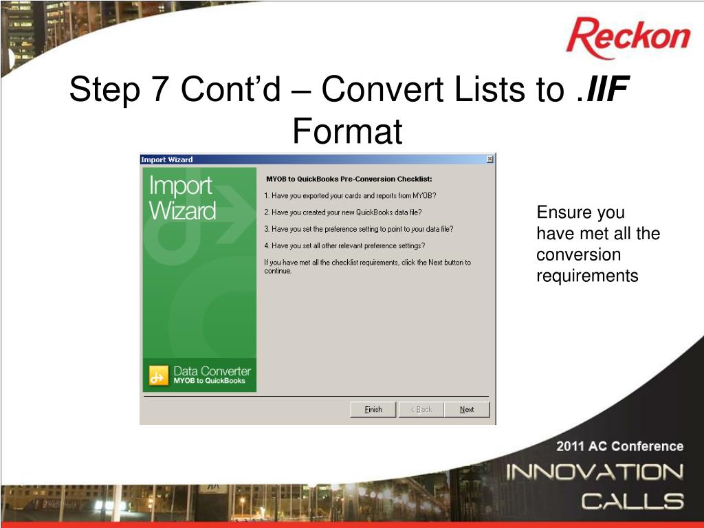Step 7 Cont’d – Convert Lists to .IIF Format Ensure you have met all the conversion requirements