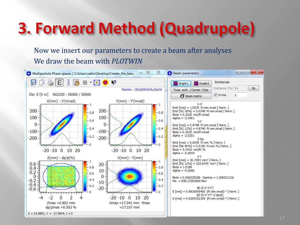 3. Forward Method (Quadrupole) • Now we insert our parameters to create a beam after analyses • We draw the beam with PLOTWIN