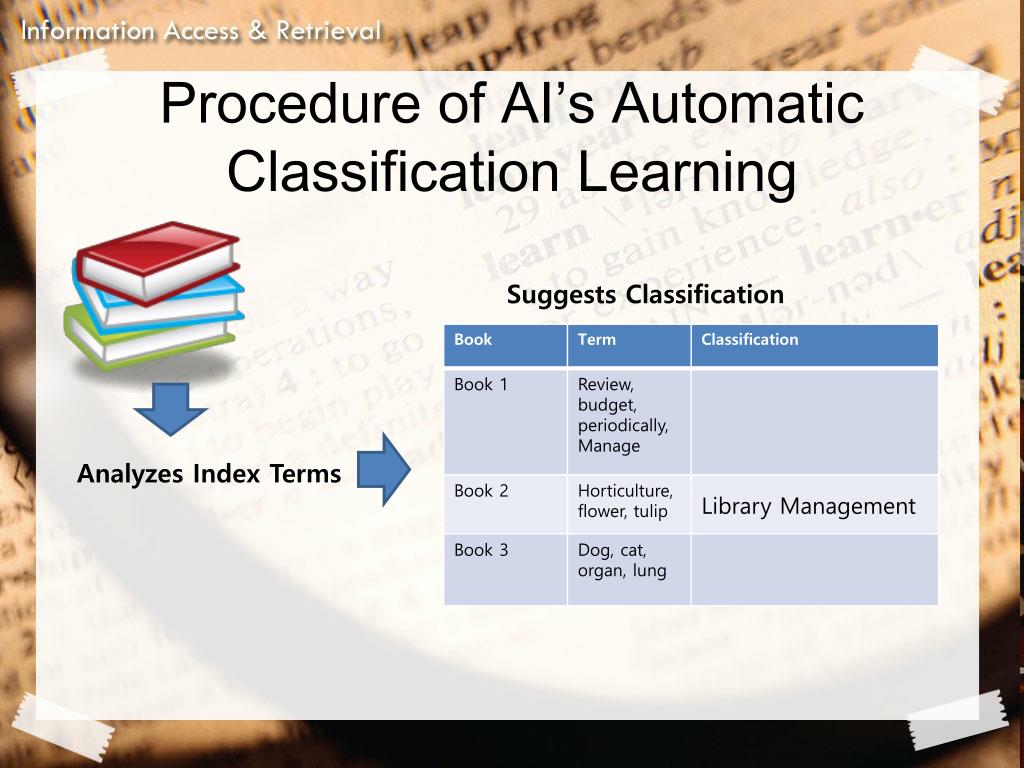 Procedure of AI’s Automatic Classification Learning Suggests Classification Analyzes Index Terms Library Management