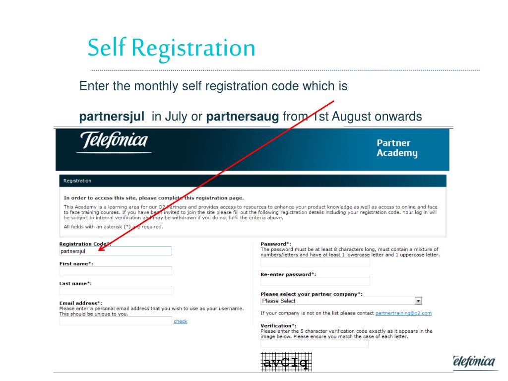 Self Registration Enter the monthly self registration code which is partnersjulin July or partnersaug from 1st August onwards 02 05