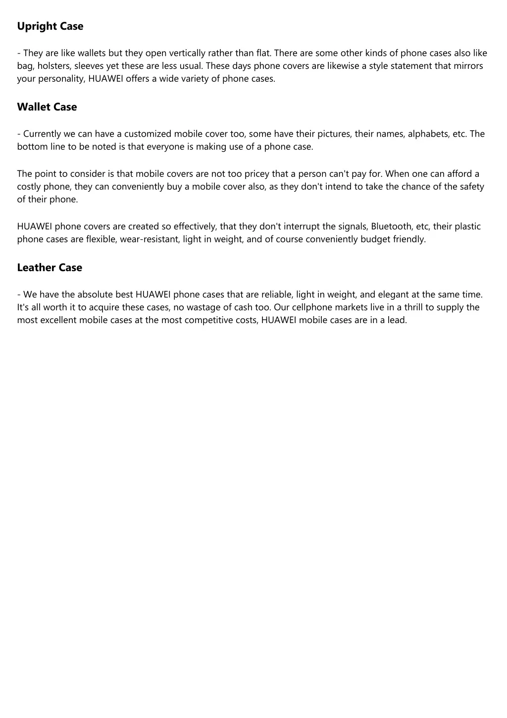 Upright Case - They are like wallets but they open vertically rather than flat. There are some other kinds of phone cases also like bag, holsters, sleeves yet these are less usual. These days phone covers are likewise a style statement that mirrors your personality, HUAWEI offers a wide variety of phone cases. Wallet Case - Currently we can have a customized mobile cover too, some have their pictures, their names, alphabets, etc. The bottom line to be noted is that everyone is making use of a phone case. The point to consider is that mobile covers are not too pricey that a person can't pay for. When one can afford a costly phone, they can conveniently buy a mobile cover also, as they don't intend to take the chance of the safety of their phone. HUAWEI phone covers are created so effectively, that they don't interrupt the signals, Bluetooth, etc, their plastic phone cases are flexible, wear-resistant, light in weight, and of course conveniently budget friendly. Leather Case - We have the absolute best HUAWEI phone cases that are reliable, light in weight, and elegant at the same time. It's all worth it to acquire these cases, no wastage of cash too. Our cellphone markets live in a thrill to supply the most excellent mobile cases at the most competitive costs, HUAWEI mobile cases are in a lead.