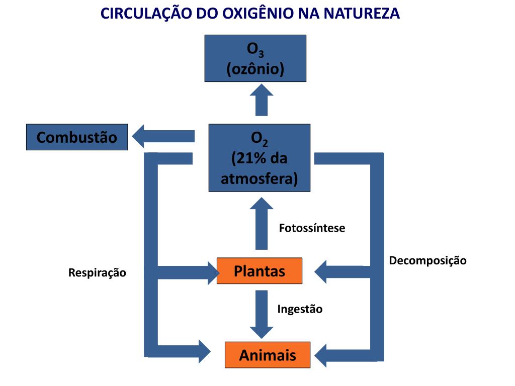CIRCULAÇÃO DO OXIGÊNIO NA NATUREZA O3 (ozônio) Combustão O2 (21% da atmosfera) Fotossíntese Decomposição Plantas Respiração Ingestão Animais