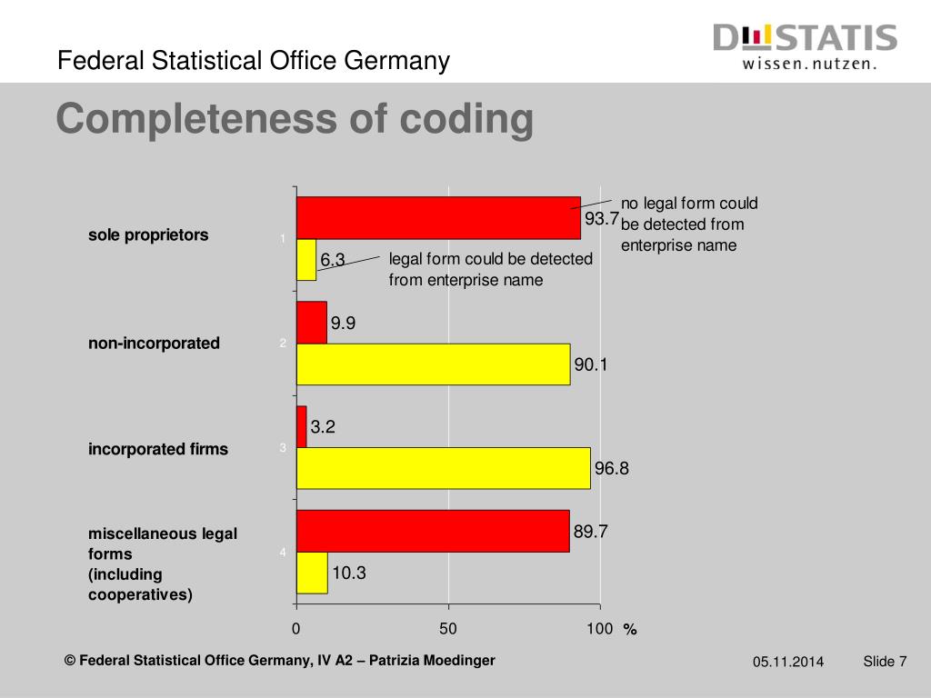Background • enterprises (legal units) with certain legal forms are legally obliged to carry their legal form in the enterprise name: • incorporated firms • non-incorporated firms • cooperatives • merchants that are registered in the German Commercial Register enterprise names can be used for legal form coding