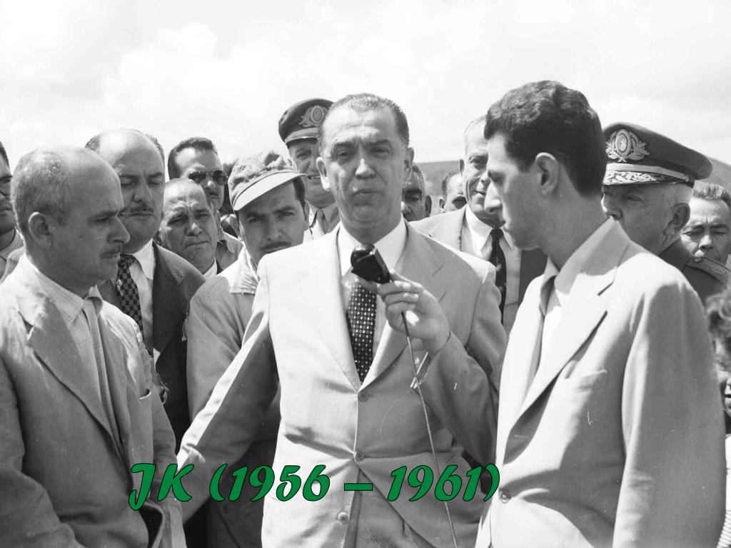 JK (1956 – 1961) • A tentativa de golpe udenista e o golpe preventivo de Teixeira Lott. • O Plano de Metas e o desenvolvimentismo da era JK. • A construção de Brasília. • Consequências: desnacionalização econômica, inflação, êxodo rural, aumento da dívida externa.