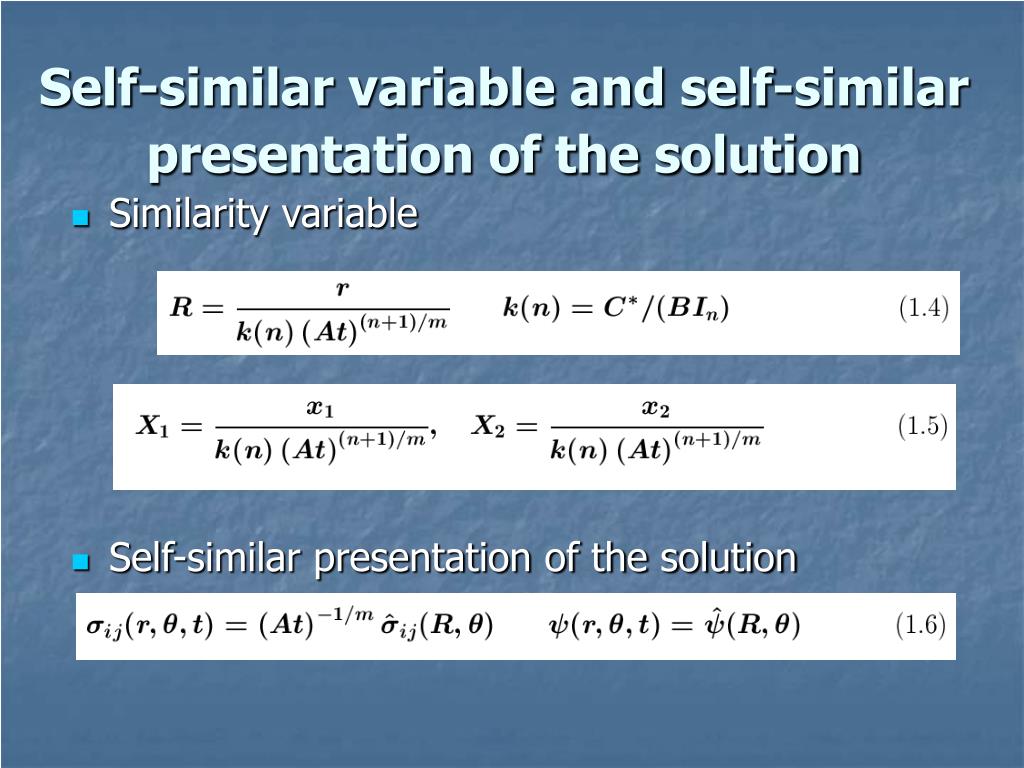 Self-similar variable and self-similar presentation of the solution • Similarity variable • Self-similar presentation of the solution